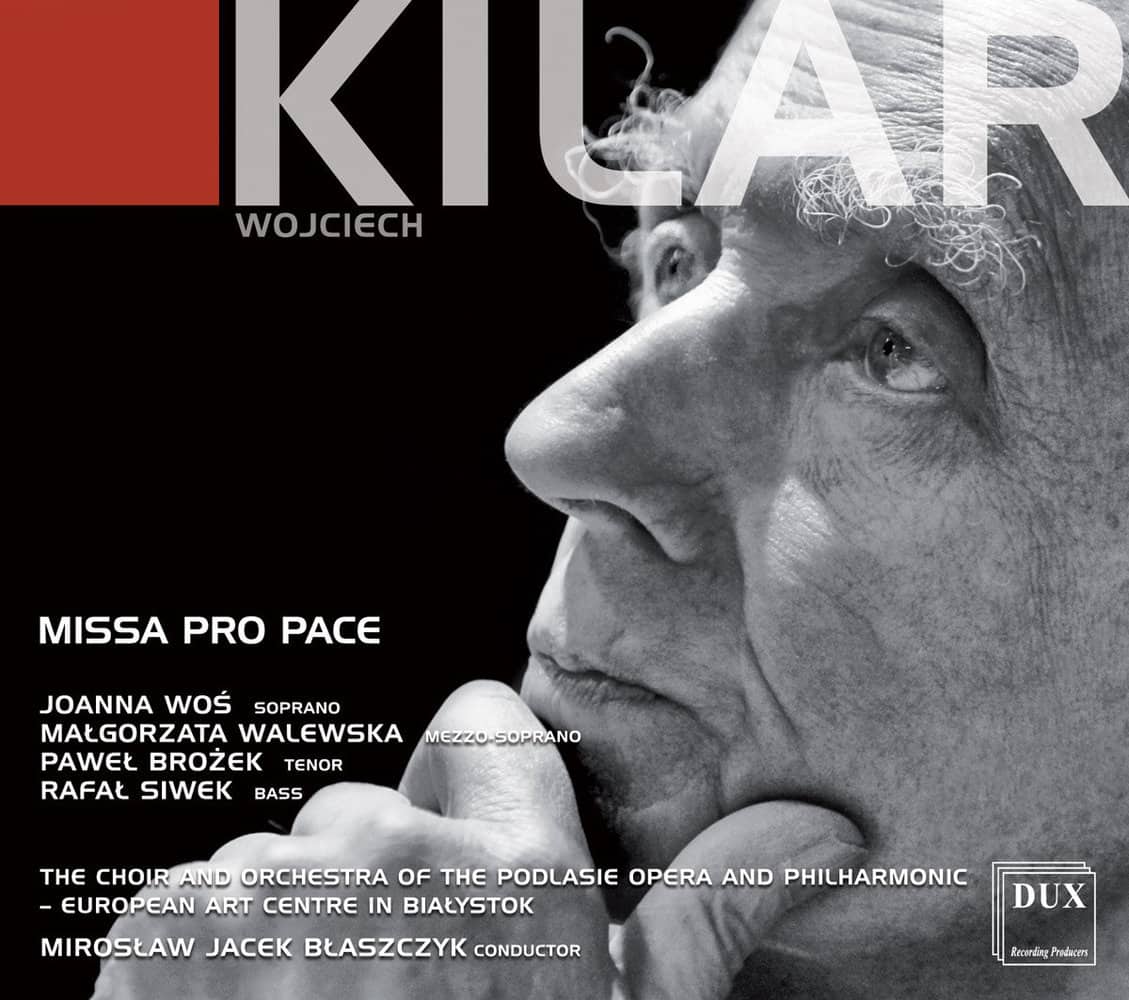 "Missa Pro Pace" Wojciecha Kilara, skomponowana w 2000 roku, na stulecie Filharmonii Narodowej, przeniknięta jest duchem średniowiecznej muzyki kościelnej – przeważa w niej nastrój medytacji, kontemplacji i modlitewnego skupienia. Na pierwszy plan wysunięty został śpiew i tekst liturgiczny, dopełniony skromnym zestawem prostych środków techniki kompozytorskiej, co służy świadomej archaizacji. Msza zbudowana została tradycyjnie, z pięciu części: Kyrie, Gloria, Credo, Sanctus i Agnus Dei, poprzedzonych organowym Introitus, przy czym kulminacja przebiegu muzycznego dzieła przypada w finałowym fragmencie ostatniego ogniwa – Dona nobis pacem. Dominujące zazwyczaj Credo i Sanctus w kompozycji Kilara są momentami wyciszenia i zadumy. Skład zespołu: Joanna Woś - sopran / soprano Małgorzata Walewska - mezzosopran / mezzo-soprano Paweł Brożek - tenor Rafał Siwek - bas / bass Chór i Orkiestra Opery i Filharmonii Podlaskiej – Europejskiego Centrum Sztuki w Białymstoku / The Choir and Orchestra of the Podlasie Opera and Philharmonic – European Art Centre in Białystok Mirosław Jacek Błaszczyk - dyrygent / conductor Violetta Bielecka przygotowanie - chóru / chorus master