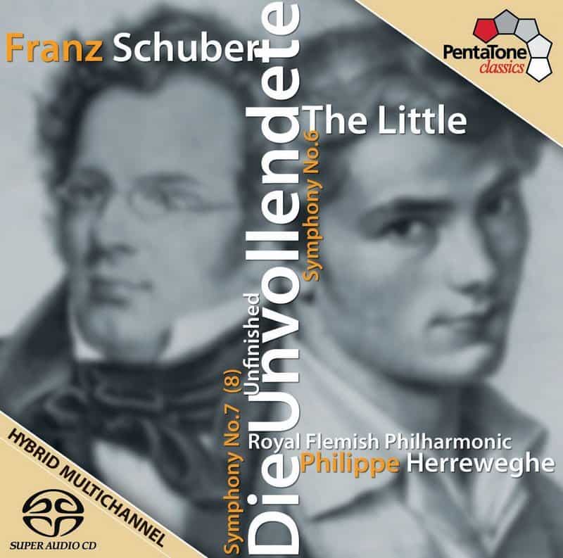 This album is a continuation of PentaTone’s collaboration with the Royal Flemish Philharmonic and its conductor Philip Herreweghe The previous Schubert album was PTC 5186 372.This album got excellent reviews. Here are a few quotes:This performance truly recalls Robert Schumann’s description of the Ninth as “the Symphony of Heavenly Lengths.’ (infodad.com)Herreweghe’s recording is a great one. It tells us as much about Schubert as any performance I know, instead of telling us about the conductor. It is everything a Schubert Ninth on modern instruments should be. (Fanfare)This is a performance that blows away the cobwebs. (MusicWeb International)