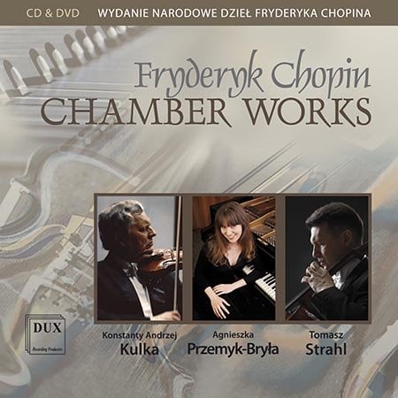 Pianistka Agnieszka Przemyk-Bryła, wiolonczelista Tomasz Strahl i grający na skrzypcach Konstanty Andrzej Kulka prezentują utwory kameralne Fryderyka Chopina.Najbardziej znany polski kompozytor kojarzony jest przede wszystkim z muzyką na fortepian solo, natomiast kameralistyka, choćby przez swoje niewielkie rozmiary, zdaje się odgrywać w jego twórczości drugorzędną rolę. Niemniej wszystkie utwory zamieszczone na płycie noszą niezatarte piętno geniuszu muzycznego Chopina, a każdy z nich stanowił istotny rozdział w twórczej biografii kompozytora. Jest to prawdą szczególnie w stosunku do pisanej pod koniec życia Sonaty g-moll, ostatniego utworu wydanego za życia twórcy. Niniejsze nagranie zrealizowane została według zapisu Wydania Narodowego Dzieł Fryderyka Chopina pod redakcją Jan Ekiera.
