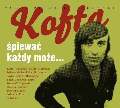 Kofta, śpiewać każdy może - to druga odsłona muzycznej serii pt. „Poeci Polskiej Piosenki”, która przedstawia dokonania wybitnych polskich twórców, których teksty i melodie wciąż nas zachwycają inspirując młode pokolenie wykonawców do nowych wspaniałych interpretacji. To 2CD na których znalazło się 30 wybranych piosenek Jonasza Kofty, którego twórczość wciąż na nowo odkrywamy dzięki kolejnym zjawiskowym kreacjom artystów uznanych jak i zauważonych już debiutantów. Wśród wykonawców obok samego autora takie znakomitości jak: Jerzy Stuhr, Bogusław Mec, Halina Frąckowiak, Anna Serafińska, Michał Bajor, Zbigniew Wodecki, Hanna Banaszak, Krystyna Prońko, Stan Borys, Alibabki.W przygotowaniu kolejne części serii: Młynarski, gram o wszystko…, oraz Przybora, piosenka jest dobra na wszystko... Każda z części zawiera dwie płyty: CD1 z piosenkami nagranymi przed laty, CD2 z nowymi wersjami utworów w wykonaniu artystów młodego pokolenia. CD 11. Samba przed rozstaniem - Hanna Banaszak2. Kwiat jednej nocy - Alibabki3. Całe życie czekam - Danuta Błażejczyk4. Jej portret - Bogusław Mec5. Radość o poranku - Grupa I6. Walc szczęście - Łucja Prus7. W młodości sadźcie drzewa - Dwa Plus Jeden8. Z tobą chcę oglądać świat - Zdzisława Sośnicka i Zbigniew Wodecki9. Podróżą każda miłość jest - Alicja Majewska10. Kochać znaczy żyć - Zdzisława Sośnicka11. Płoń moja gwiazdo - Gaja12. Kołysanka na rozstanie - Andrzej Dąbrowski13. Pamiętajcie o ogrodach - Jonasz Kofta14. Śpiewać każdy może - Jerzy Stuhr15. Song o ciszy - Jonasz KoftaCD 21. Wakacje z blondynką - Katarzyna Skrzynecka i Paweł Deląg2. Do łezki łezka - Magdalena Cielecka3. Nieobecni - Anna Serafińska4. Stoisz w kolejce po moje serce - Hanna BSanaszak5. Jej portret - Piotr Cugowski6. Trzeba Marzyć - Anna Serafińska7. Epitafium dla Mahalii Jackson - Stanisław Soyka8. Ty wiesz najlepiej - Krystyna Prońko9. To ziemia - Stan Borys10. Mury Jerycha - Robert Janowski11. Popołudnie - Michał Bajor12. Popłynę łódką - Lora Szafran13. Piasek - Robert Janowski14. Wołanie Eurydyki - Joanna Lewandowska15. Idź swoją drogą - Trzy Dni Później