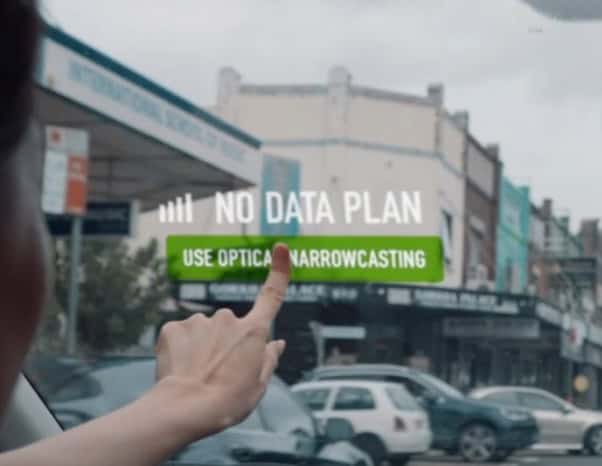 Kalifornijska firma Surefire prezentuje swój nowy system komunikacji w podczerwieni o nazwie ARON (Augmented Reality Optical Narrowcasting). Jest to forma bezprzewodowej transmisji danych z wiązkami światła. Przesyła informacje za pomocą światła podczerwonego i optycznych radiolatarni w zakresie do 2000 metrów. Informacja jest odbierana przez sygnał nawigacyjny w telefonie lub urządzeniu podobnym do Google Glass i przekształca go w widok AR (rozszerzonej rzeczywistości) świata wokół ciebie. ARON nie jest zależny od Wi-Fi ani danych komórkowych i może działać w oparciu o energię słoneczną, niezależnie. Działa podobnie jak wskaźniki Bluetooth, ale za pośrednictwem podczerwieni, a nie częstotliwości radiowych. Może być używany w miejscach, gdzie Wi-Fi nie działa.