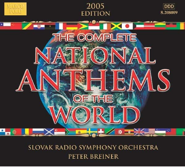 Tracklista:1. NATIONAL ANTHEMS OF THE WORLD (COMPLETE) (2005 Edition), Vol. 1: Acadia - Botswana 8.2253192. NATIONAL ANTHEMS OF THE WORLD, (COMPLETE) (2005 Edition), Vol. 2: Brazil - Czech Republic 8.2253203. NATIONAL ANTHEMS OF THE WORLD (COMPLETE) (2005 Edition), Vol. 3: Denmark - Grenada 8.2253214. NATIONAL ANTHEMS OF THE WORLD (COMPLETE) (2005 Edition), Vol. 4: Guadeloupe - Kyrgyzstan 8.2253225. NATIONAL ANTHEMS OF THE WORLD (COMPLETE) (2005 Edition), Vol. 5: Laos - Myanmar 8.2253236. NATIONAL ANTHEMS OF THE WORLD (COMPLETE) (2005 Edition), Vol. 6: Nagorno-Karabakh - Puerto Rico 8.2253247. NATIONAL ANTHEMS OF THE WORLD (COMPLETE) (2005 Edition), Vol. 7: Qatar - Syria 8.2253258. NATIONAL ANTHEMS OF THE WORLD (COMPLETE) (2005 Edition), Vol. 8: Taiwan - Zimbabwe 8.225326